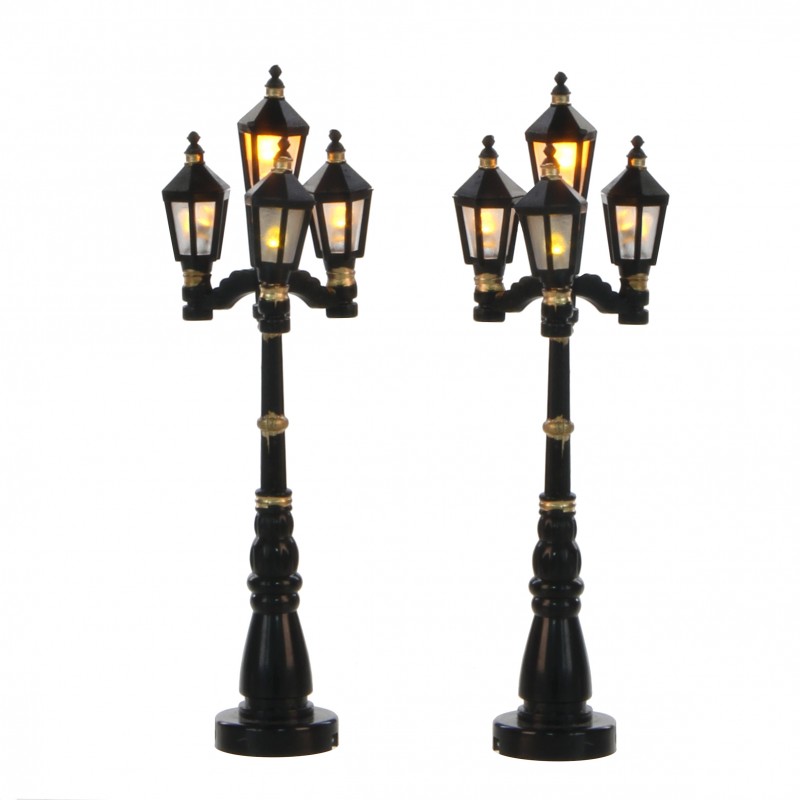 Old English street lantern 2 pieces battery operated - h10,5cm