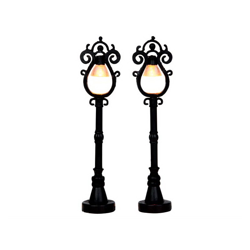 Ensemble de 2 accessoires de la collection Caddington de LEMAX. Utilisez ces réverbères pour éclairer sur une rue ou un passage dans votre village de Noël, pour les visiteurs de la nuit.