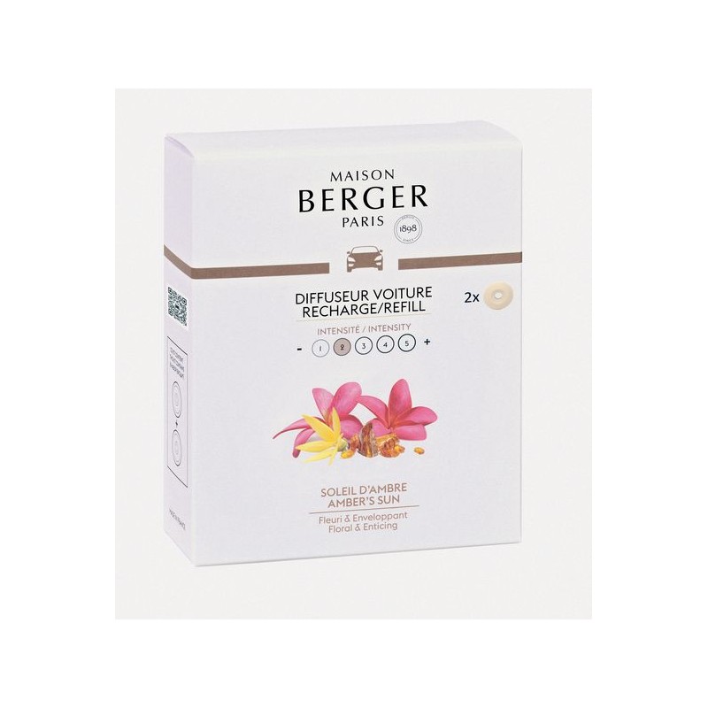 Ensoleillez vos trajets avec les Recharges Diffuseur voiture Soleil d'Ambre ! Les notes de tête. très fleuries. se composent de tubéreuse. de freesia et de cyclamen. dans un alliage opulent. lumineux et plein de légèreté. En son coeur. l'authenticité florale du jasmin est associée à l'ylang et à la rose enveloppante. Puis. la composition olfactive s'achève sur des accords d'ambre. de cèdre blond et de figue. Senteurs de sable chaud et effluves de crèmes solaires se rappellent alors à votre doux souvenir avec cette fragrance estivale.