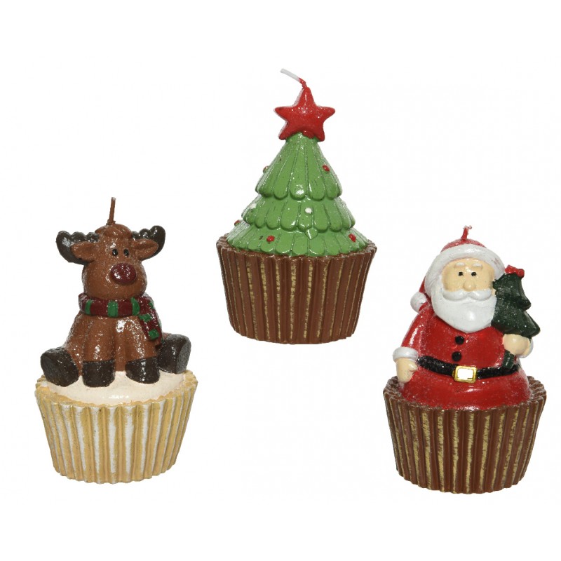 Bougie cire renne- sapin - pere noel 3ass