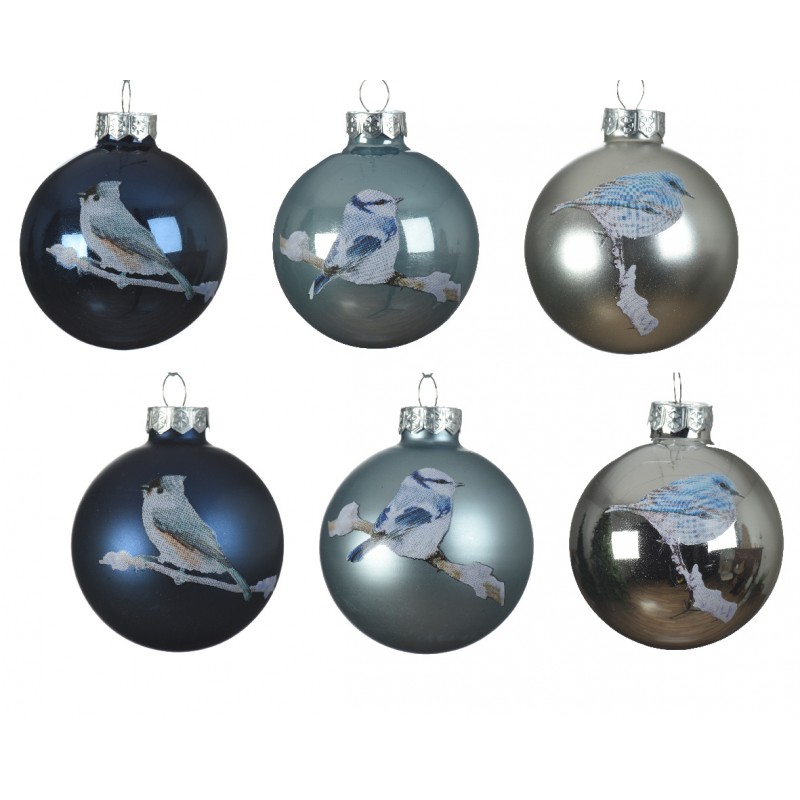 Boules verre brillant-mat-emaille oiseau 6ass