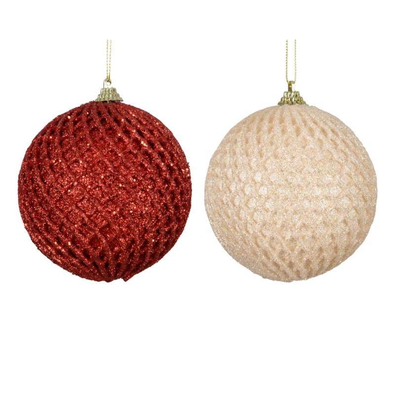 Boule Paillette Rouge/Crème En Mousse Ø8 - Vendu À La Pièce-DECORIS