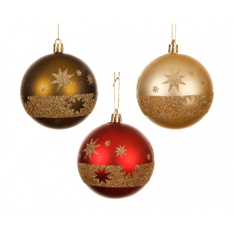 Boule Étoile Or/Rouge En Polypropylène Ø8 - Vendu À La Pièce-DECORIS