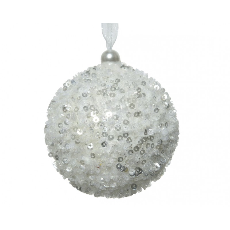 Boule Sequin Blanc Hiver Ø8 En Mousse-Vendu À La Pièce-DECORIS
