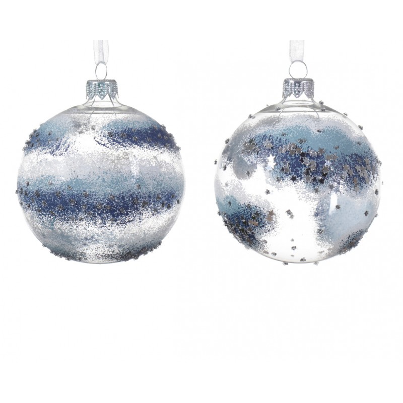 Boule Étoile Autour Transparent/Bleu Ø8 En Verre-Vendu À La Pièce-DECORIS