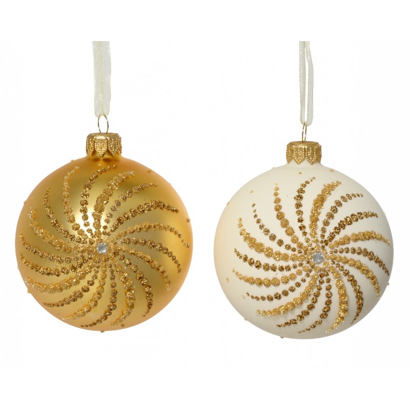 Boule Torsades Pois Or/Crème En Verre Ø8 - Vendu À La Pièce-DECORIS