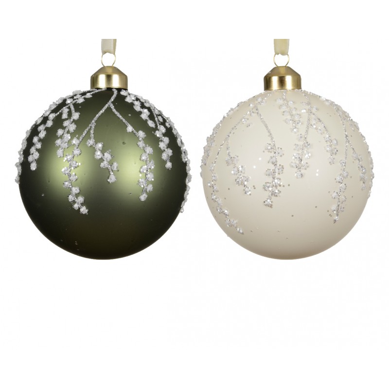 Boule Branche Vert/Blanc En Verre Ø10 - Vendu À La Pièce-DECORIS