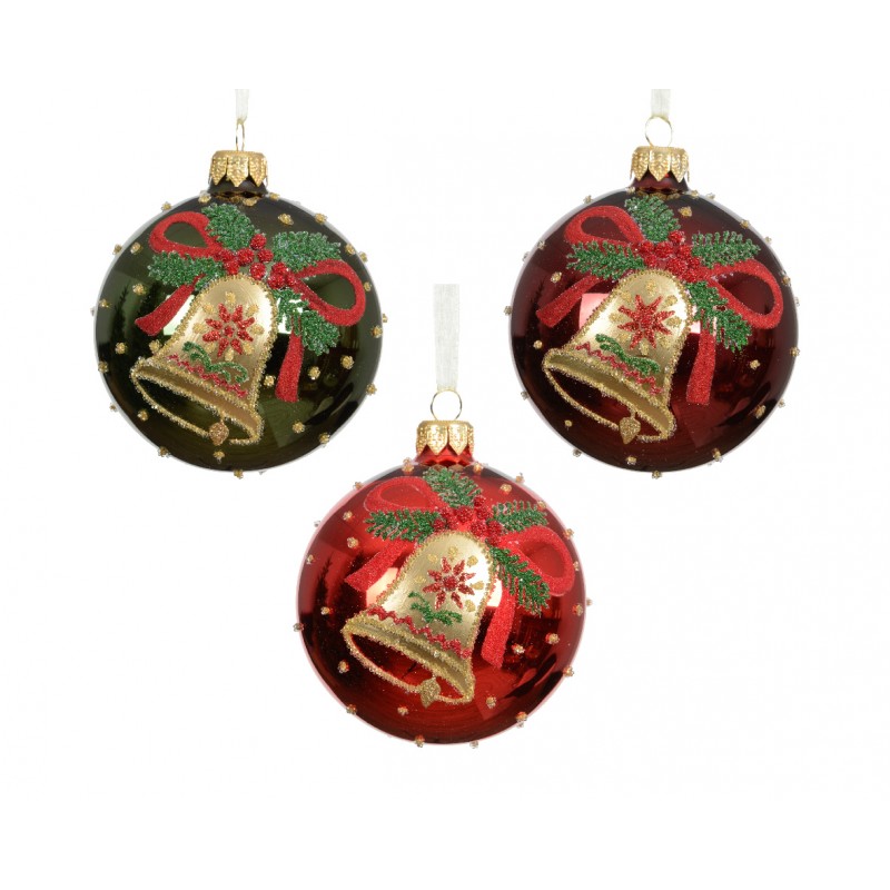 Boule Clochette Noel Rouge/Vert/Or En Verre Ø8 - Vendu À La Pièce-DECORIS
