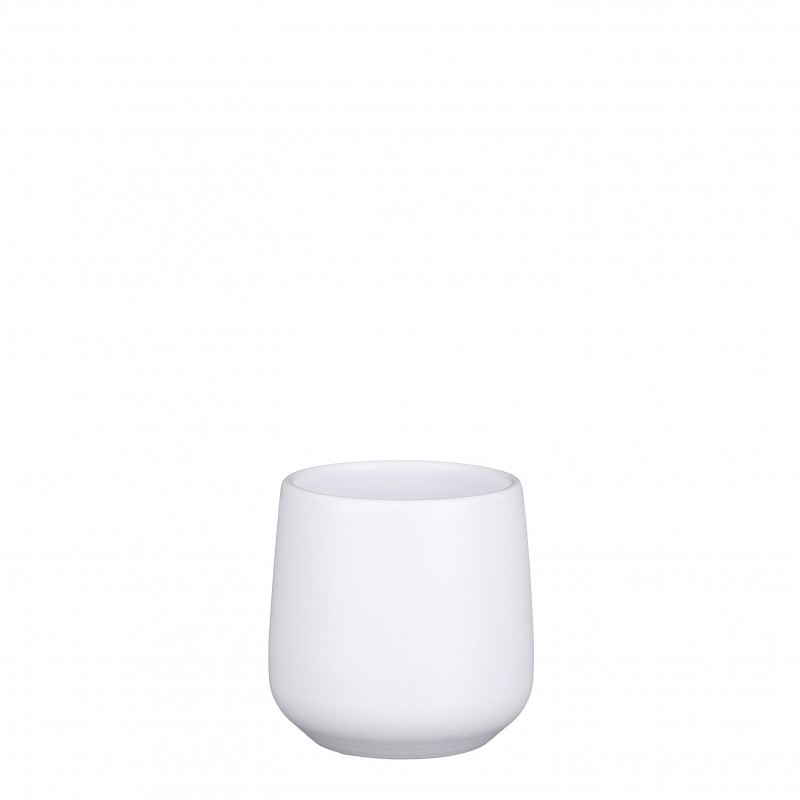 Cache-Pot Amber Rond Blanc Mat En Céramique H11.5-Ø12-MICA DECORATIONS