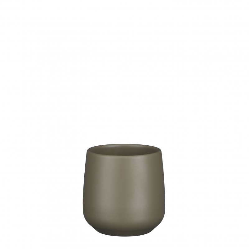Cache-Pot Amber Rond Vert Mat En Céramique H11.5-Ø12-MICA DECORATIONS