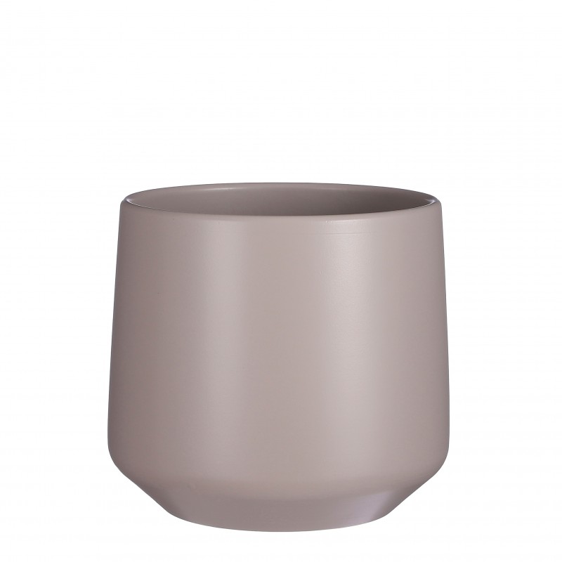 Cache-Pot Amber Rond Taupe Mat En Céramique H21-Ø23.5-MICA DECORATIONS