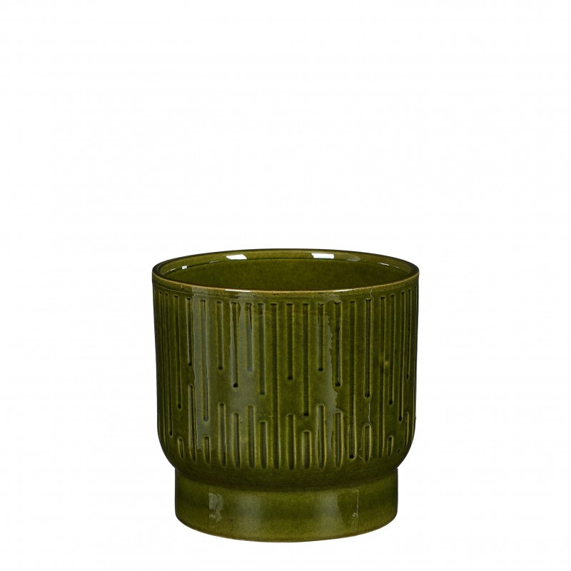 Cache-Pot Thiago Vertical Rond Vert Foncé En Terre Cuite H15-Ø17-MICA DECORATIONS
