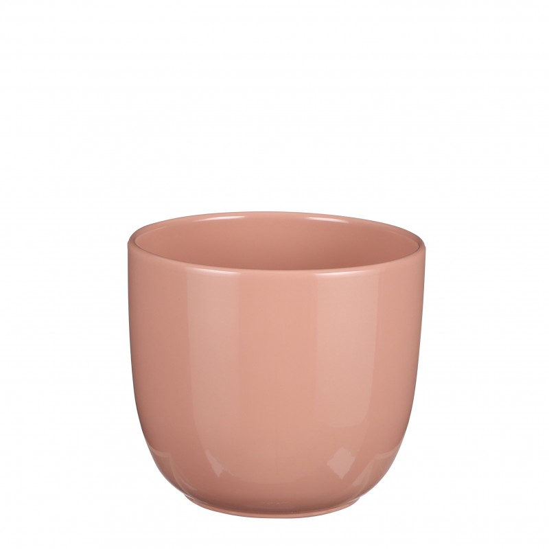 Cache-Pot Tusca Rond Rose Clair En Céramique H14-Ø14.5-MICA DECORATIONS
