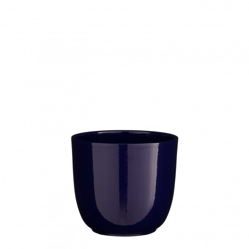 Cache-Pot Tusca Rond Bleu Brillant En Céramique H14-Ø14.5-MICA DECORATIONS