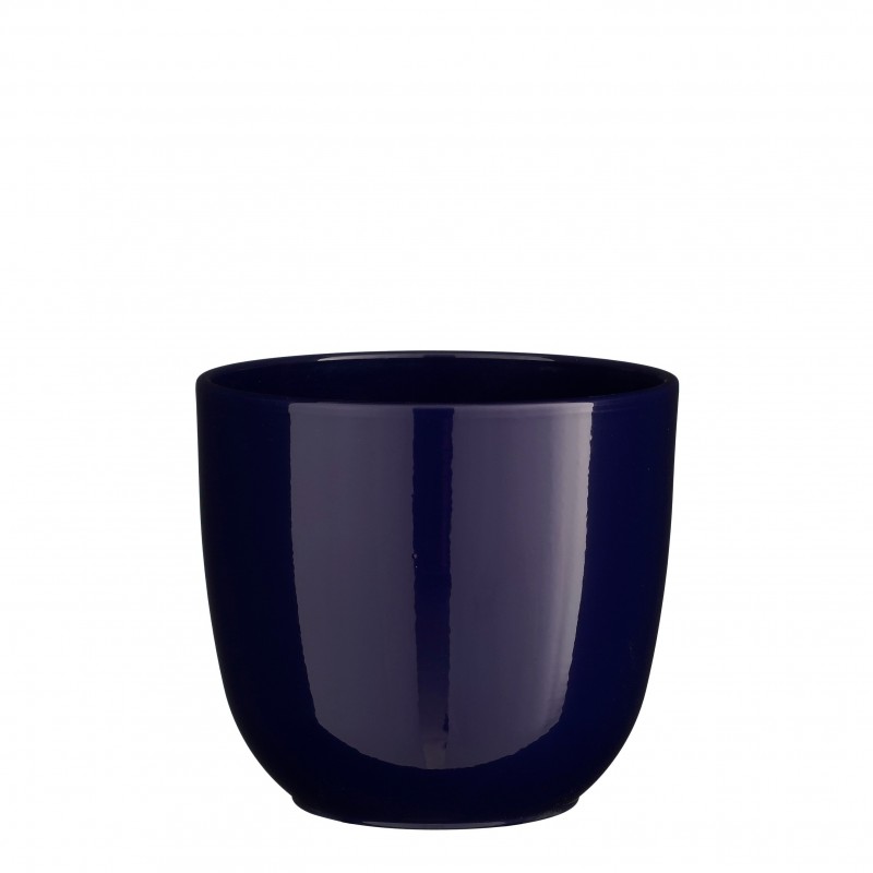 Cache-Pot Tusca Rond Bleu Brillant En Céramique H18.5-Ø19.5-MICA DECORATIONS