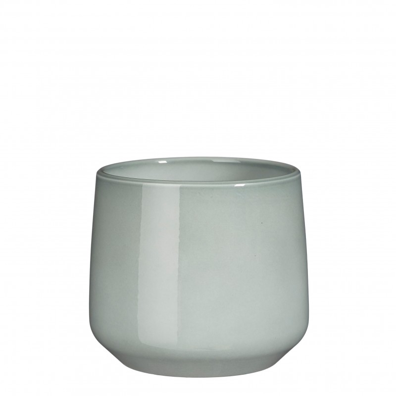 Cache-Pot Amber Rond Gris Clair En Céramique H15.5-Ø17-MICA DECORATIONS