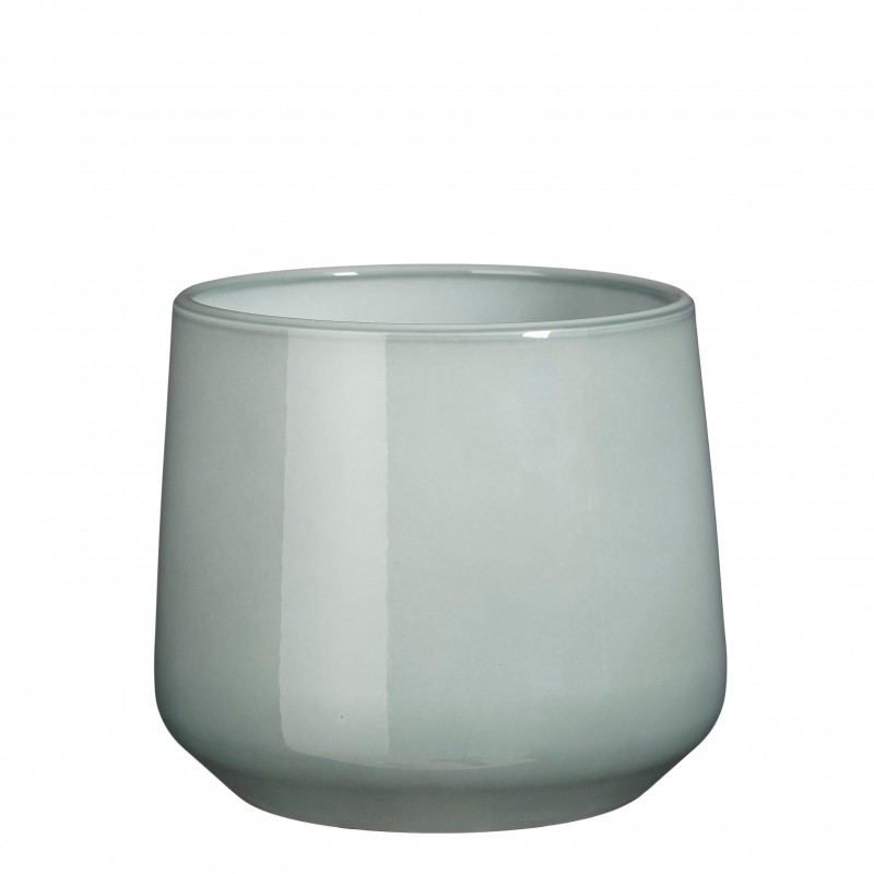Cache-Pot Amber Rond Gris Clair En Céramique H18-Ø21-MICA DECORATIONS