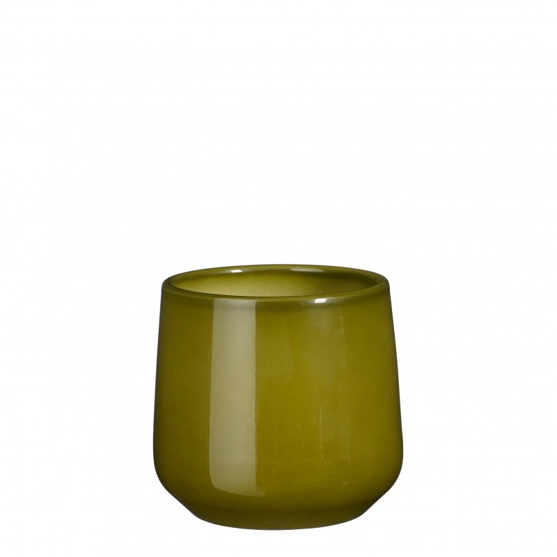 Cache-Pot Amber Rond Vert En Céramique H13.5-Ø14-MICA DECORATIONS