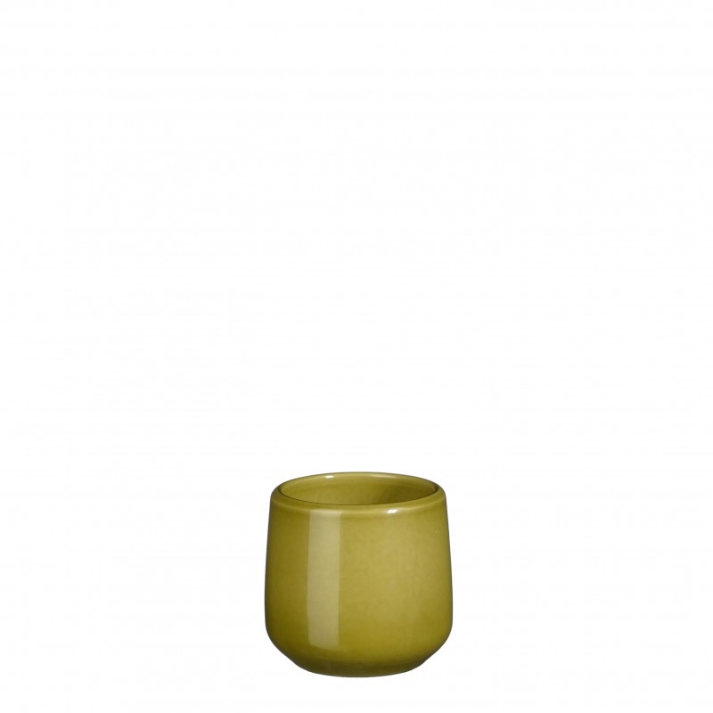 Cache-Pot Amber Rond Vert En Céramique H7-Ø8-MICA DECORATIONS