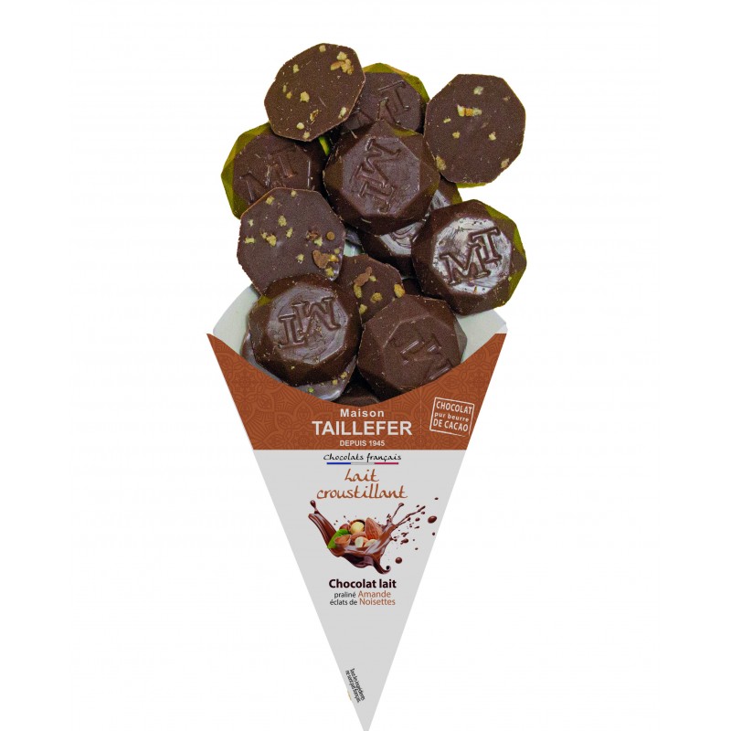 Un délicieux praliné croustillant enrobé de chocolat au lait, pour une pause tout en douceur et texture.