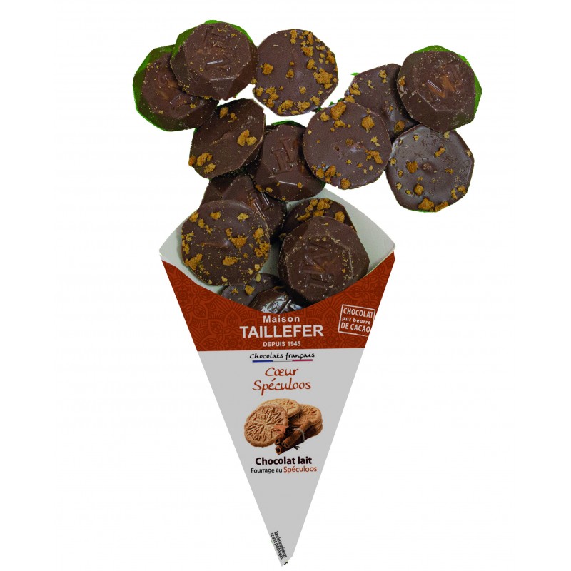 Un cœur fondant à la crème de spéculoos dans un enrobage de chocolat au lait, pour une douceur épicée et généreuse.