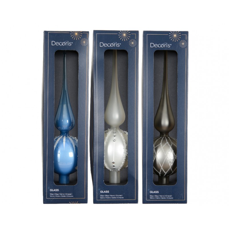 Cimier Décoré Bleu/Gris/Blanc En Verre Ø8-H31 - Vendu À La Pièce-DECORIS