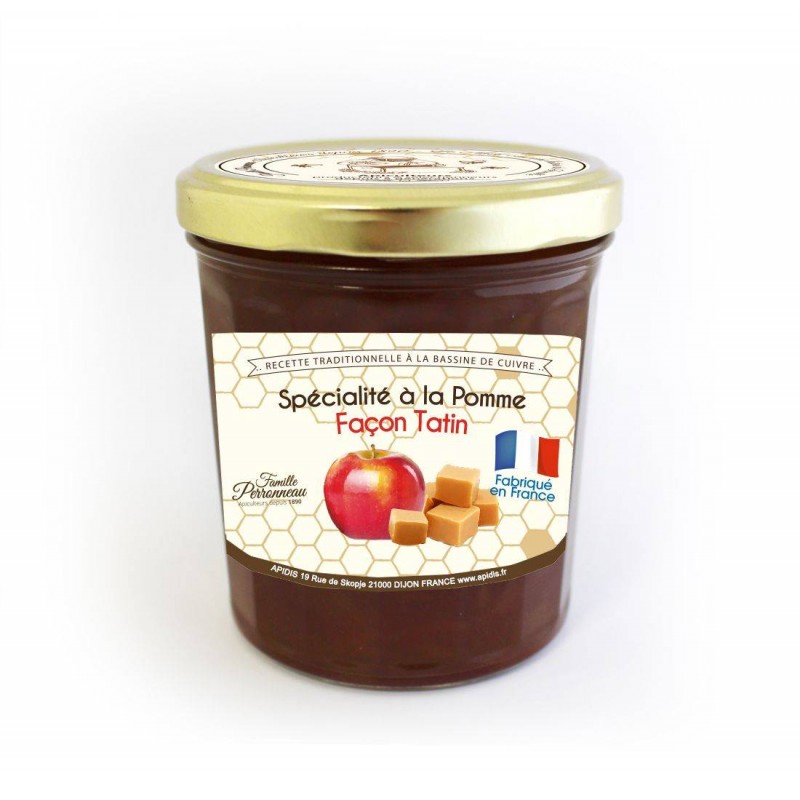 MENTIONS OBLIGATOIRES: Ingrédients: Pomme. sucre de canne. miel 6%. gélifiant (pectine de fruits). jus d citron. caramel. Conseils de conservation: Après ouverture. conserver au frais et consommer dans les 15 jours. Allergènes: Absence d’allergènes. Présence éventuelle de fruits à coques et de lait. Acides gras saturés (g): 0.1 Energie (Kcal): 246 Energie (Kj): 1044 Glucides (g): 59.6 Matières grasses (g): 0.2 Protéines (g): 0.2 Sel (g): 0.001 Sucres (g): 59.3