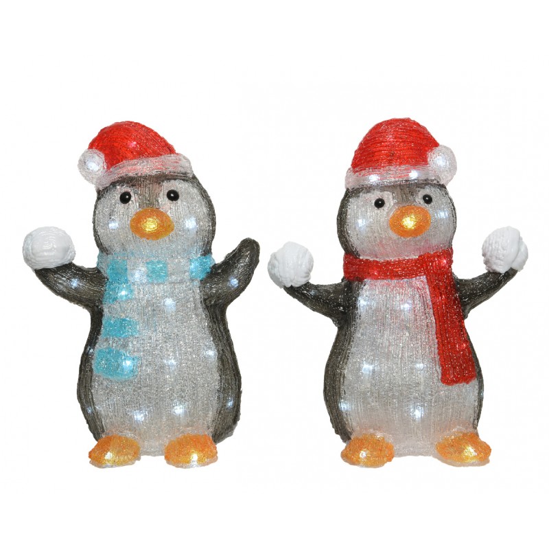 Pingouin Led/Pile Acrylique Fixe-Int/Ext Blanc Froid H35-40L-Vendu À La Pièce