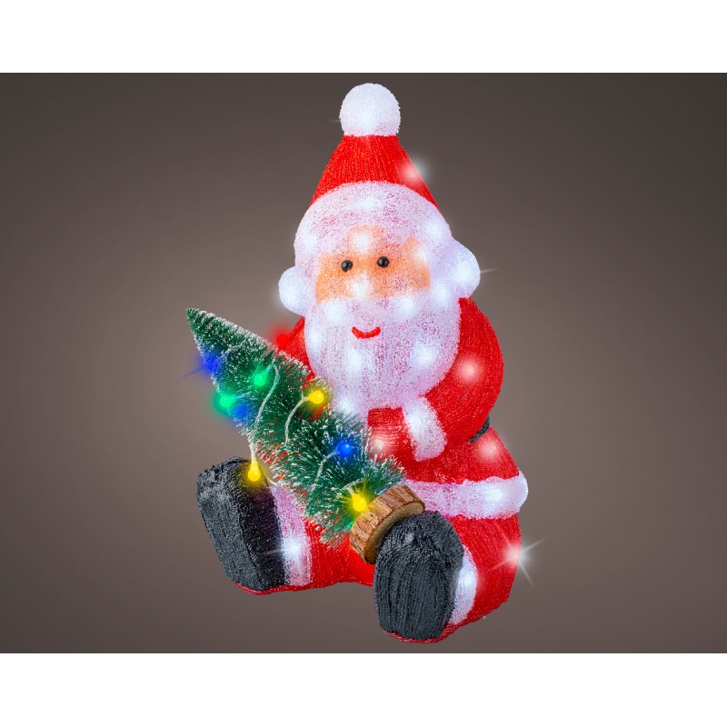 Père Noël Lumineux Avec Sapin Led Blanc Froid En Acrylique H49.50-80L - Vendu À La Pièce-LUMINEO