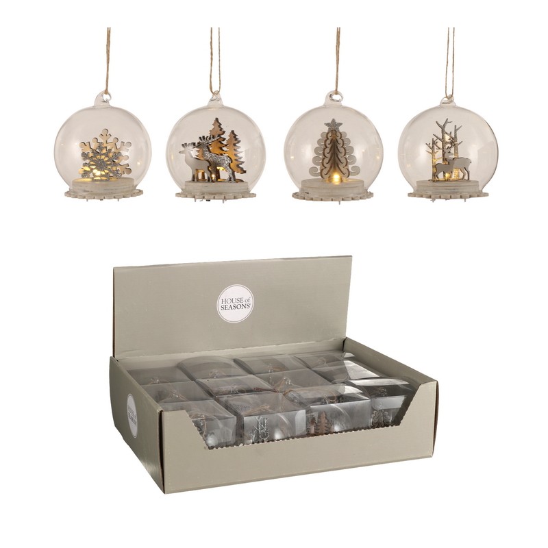 Boule verre scene hiver argent 4 assorti fonctionnant sur batterie display - h9xd8cm