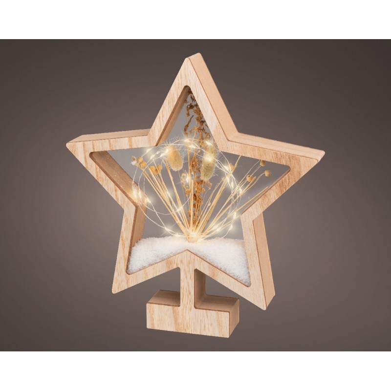 Étoile Led Fleurs Séchées Mdf Fixe-Int Naturel/Blanc Chaud H28-25L