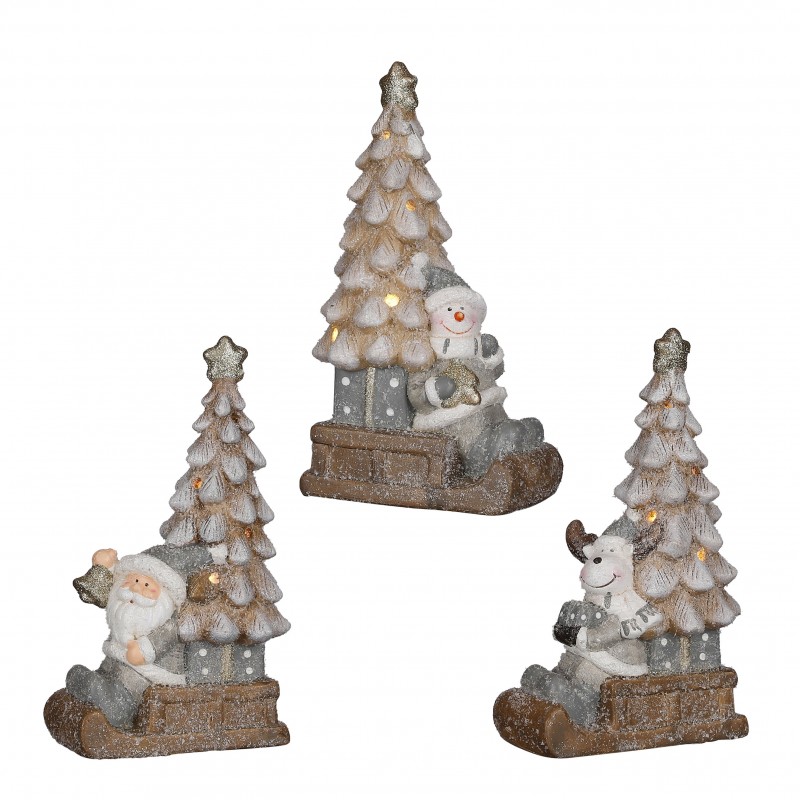 Père Noël/BN/renne a/sap lum s/luge h25 gris. Vendu à la pièce au choix parmis les 3