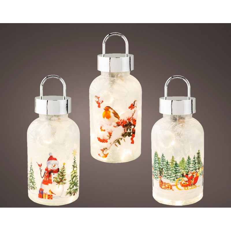 Lampe De Table Oiseau/Père Noël/Bonhomme De Neige Led Blanc Chaud En Verre Ø10-H23-15L - Vendu À La Pièce-LUMINEO