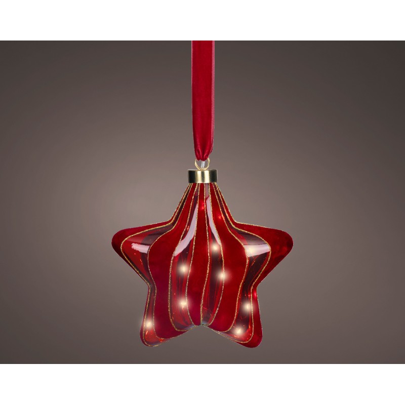Étoile Spirale À Suspendre Led Rouge/Blanc Chaud Intérieur En Verre H20-15L - Vendu À La Pièce-LUMINEO