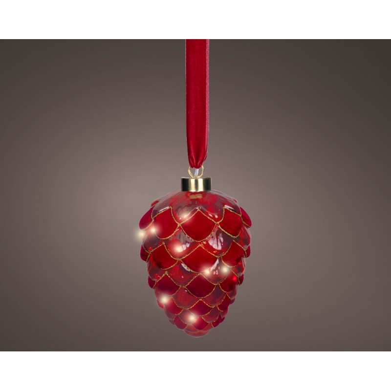 Pomme De Pin Spirale À Suspendre Led Rouge/Blanc Chaud Intérieur En Verre H21-15L - Vendu À La Pièce-LUMINEO