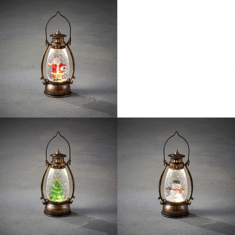 Lanterne scene noel antique blanc chaud 3 assorti fonctionnant sur batterie display - l8xb6,5xh14cm