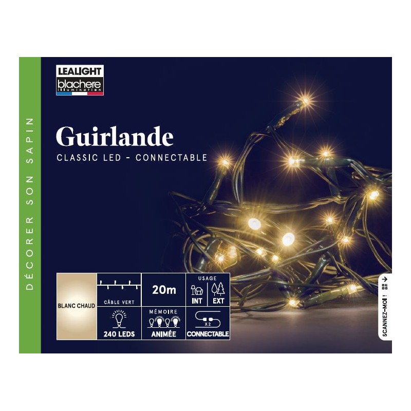 Guirlande Flicker Light®Led Connectable Blanc Chaud Câble Vert 24W Clignotant/Pour Intérieur Et Extérieur 20M-240L-BLACHERE