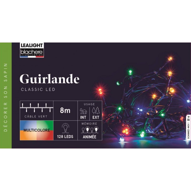 Guirlande Flicker Light®Led Multicolore Câble Vert 31V Clignotant/Pour Intérieur Et Extérieur 8M-128L-BLACHERE