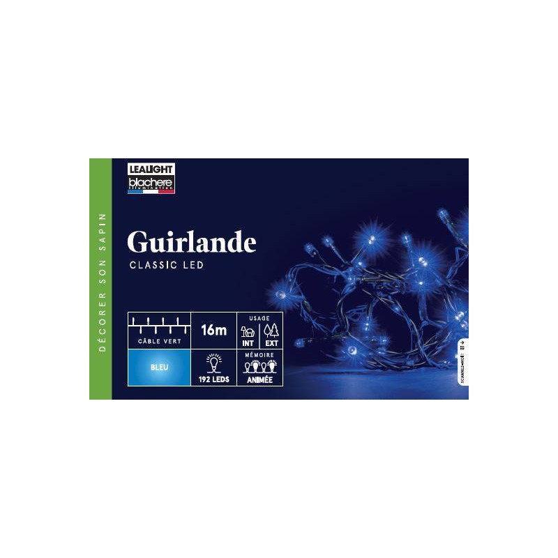Guirlande Flicker Light®Led Bleu Câble Vert 31V Clignotant/Pour Intérieur Et Extérieur 16M-192L-BLACHERE