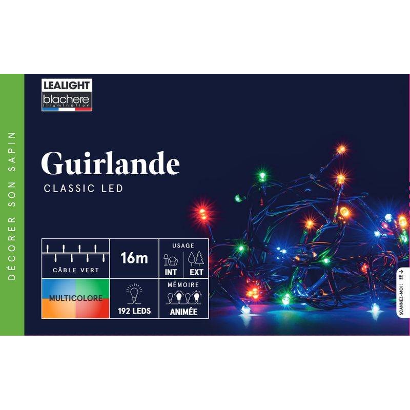 Guirlande Flicker Light®Led Multicolore Câble Vert 31V Clignotant/Pour Intérieur Et Extérieur 16M-192L-BLACHERE