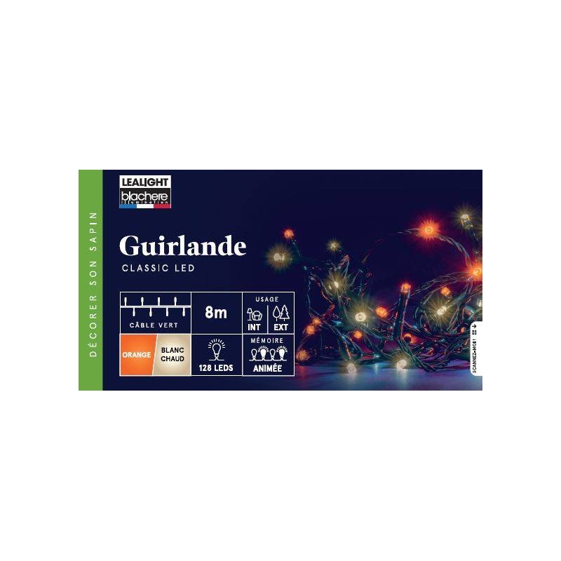 Guirlande Flicker Light®Led Orange/Blanc Chaud Câble Vert 31V Clignotant/Pour Intérieur Et Extérieur 8M-128L-BLACHERE