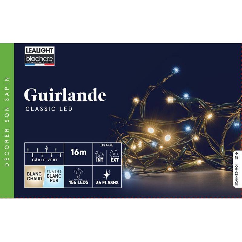 Guirlande Flicker Light®Led Blanc Chaud/Blanc Pur Câble Vert 31V Ampoules Flash/Pour Intérieur Et Extérieur 16M-156L-BLACHERE