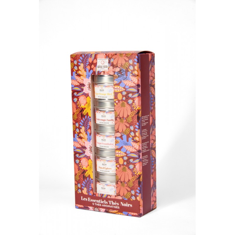COFFRETS DE THÉS LES ESSENTIELS Thés Noirs (Thés Figue-Orange-Miel. Litchi-Rose. Nougat-Framboise. Pain d Épices. Fruits Rouges-Vanille) Coffret 5 mini boîtes Pop 5 x 20 g