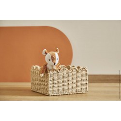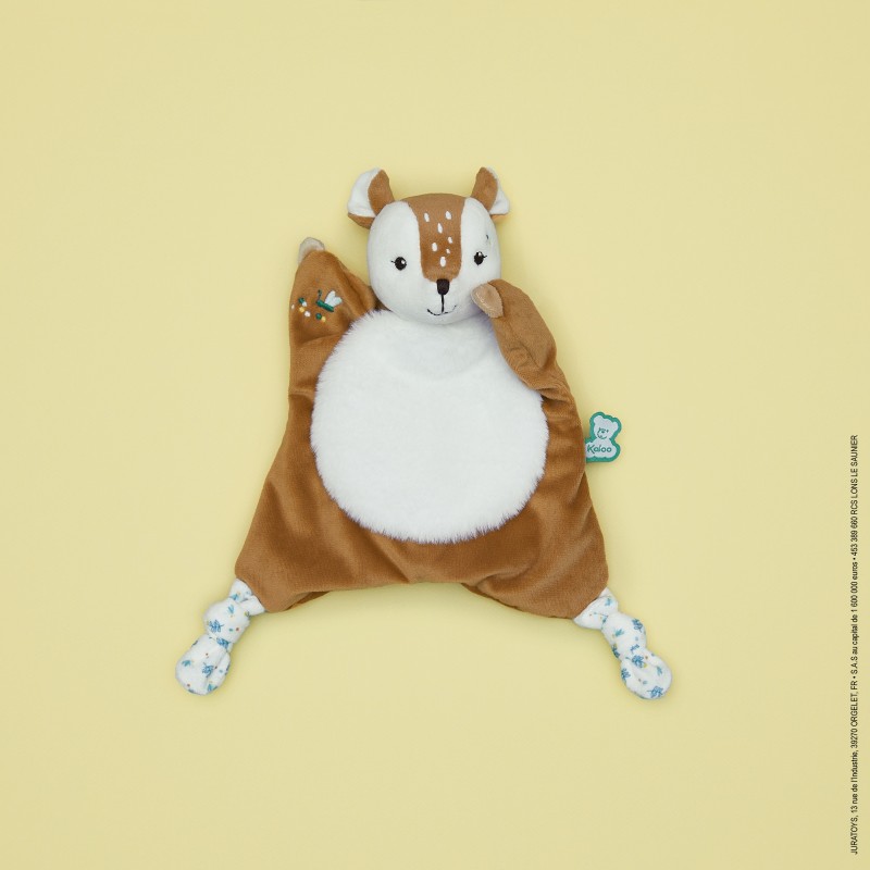 Nathan le faon est un joyeux doudou de 24 cm aux teintes lumineuses. Le meilleur compagnon pour réconforter et câliner bébé avec sa belle fourrure toute douce sur le ventre. Le doudou est agrémenté d'un motif délicat et floral avec des jolis boutons de mimosas et des confettis sur les extrémités. De longs noeuds sont présents pour pouvoir attacher une tétine et sont des points de préhension intéressants pour bébé afin de le stimuler. Rembourrage en polyester recyclé. Lavable en machine à 30°. Présenté dans une jolie boîte cadeau personnalisable avec un message dans l'espace disponible sous le couvercle. Dès la naissance.