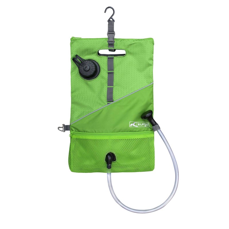 La douche de transport GO SHOWER™ est ultra pratique et compacte pour être facilement transportable. Sa capacité de 6L permet de doucher le chien jusqu’à 2 minutes en jet d’eau continu. Une sangle réglable avec système de fermeture rapide permet de fixer la douche à une branche d’arbre, portière de voiture ou encore au rétroviseur par exemple. De plus, la sangle est équipée d’un crochet pour parer à tout support de fixation. Un compartiment de rangement ventilé permet d’accueillir les accessoires de nettoyage comme un shampoing ou une brosse. Le verso est en tissu noir solaire permettant de réchauffer l’eau au soleil. La douche se range facilement : le réservoir se roule sur lui-même et le cordon et pommeau de douche peuvent être retirés ce qui permet également de laver le réservoir en machine. Ce produit bénéficie de la garantie à vie.
