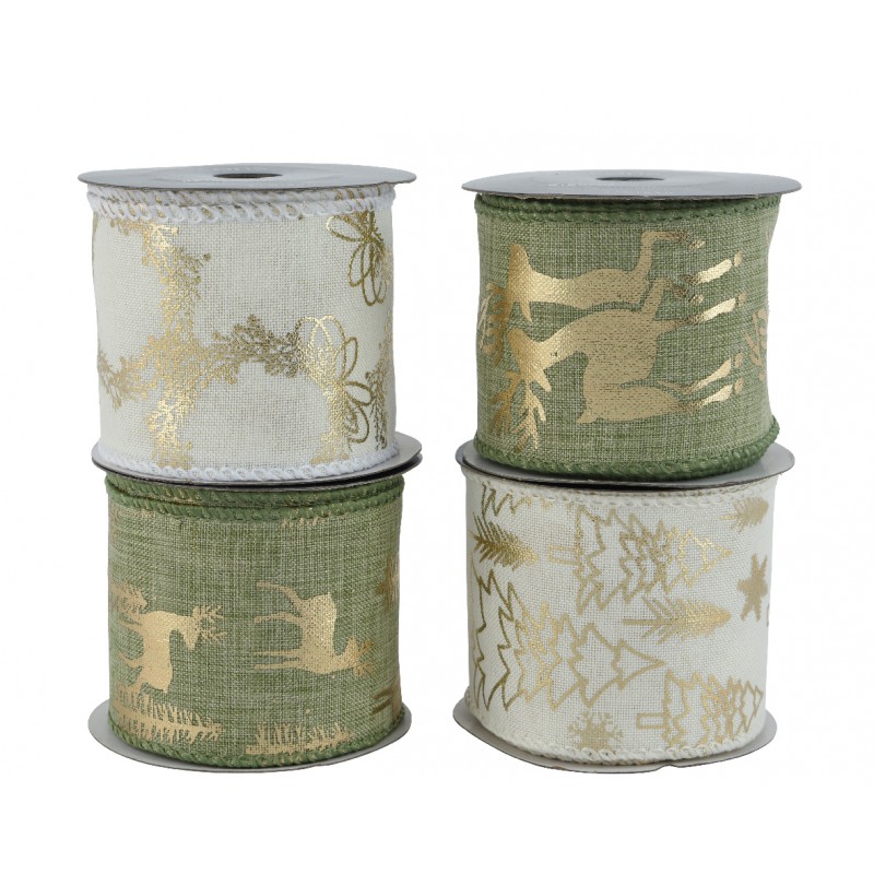 Ruban Cerf/Sapin Vert/Blanc/Or En Polyester 6.6Cmx2.7M - Vendu À La Pièce-DECORIS