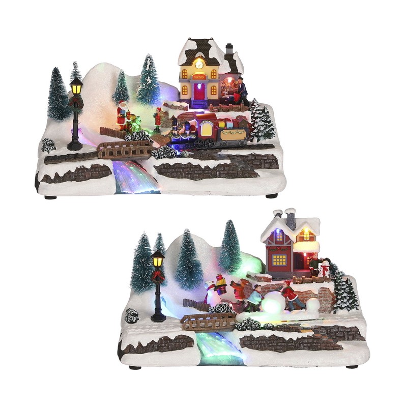 House by bridge 2 assorted battery operated PDQ 36 pieces - l30,5xw19xh17,5cm