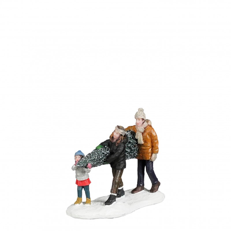 Famille Qui Porte Le Sapin En Polyrésine 9.5X4X7.5-LUVILLE