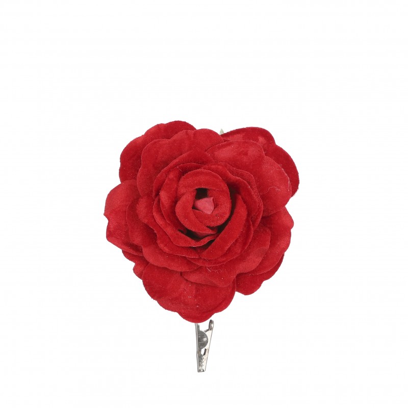 Clip rose rouge - h18xd12cm
