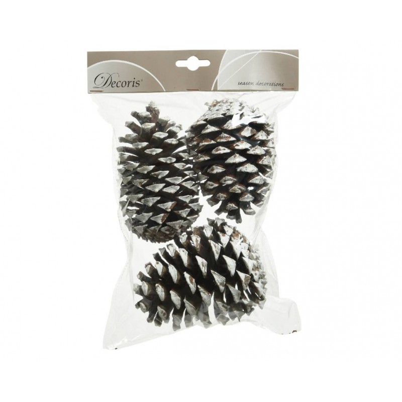 Sachet 3 Pomme De Pin Enneigées Naturel En Matière Naturelle L15.00-W2.00-H1 - Vendu À La Pièce-DECORIS